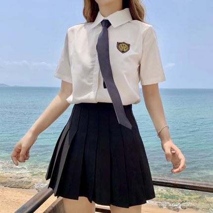 Jk制服套装网红抖音同款衣服女装酷酷女孩穿搭套装女夏冷淡风可盐可甜jk制服新款 套装 白衬衣 黑百褶裙