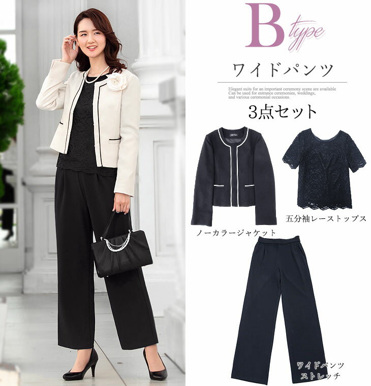 ママスーツ レディース 入学式 服装 母親 入園 卒業式 卒園 七五三 セレモニー フォーマル パンツ 3点セット 30代 40代 ノーカラー 大きいサイズ Addrouge 通販 Paypayモール